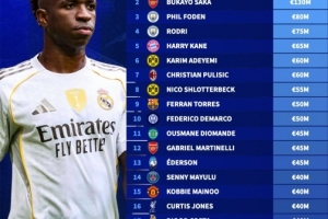 体育资讯1月4日讯 进入2026年,欧洲足坛一些球星的合同进入最后18个月,他们所在的俱乐部需要决定是否在今夏进行套现。德国转会市场盘点了2027年合同到期球员身价榜单,维尼修斯1.4亿欧居首,萨卡1.3亿欧位居次席,福登则以8000万欧排在第三位。