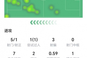 赛后技术统计数据显示,加克波本场比赛5射1正,1次错失进球,4次地面对抗3次成功,3次争顶成功1次,获评6.9分。