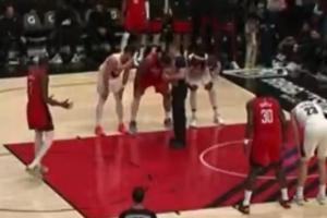 希罗和公牛吉祥物比赛半场背投 后者一击命中让希罗“临阵退缩”