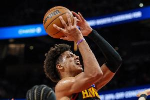 老鹰球员杰伦·约翰逊本场比赛手感不佳,三分线外更是频频打铁,未能帮助扭转局面。