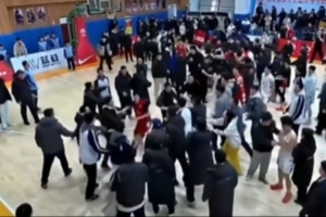 体育资讯1月20日讯 在今日耐高山东赛区决赛(两回合制)第二场的比赛中,淄博十一中(杨瀚森母校)与潍坊一中在赛场发生大规模肢体冲突,现场甚至出现“家长追打对方球员”的混乱场面。