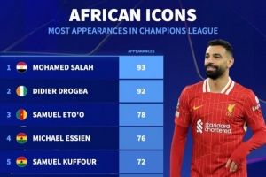 非洲球员欧冠出场榜: