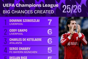 体育资讯1月23日讯 本赛季,索博斯洛伊成为利物浦阵中创造力的源泉之一,尤其在欧冠赛场上。根据Squawka的数据统计,索博斯洛伊在欧冠中创造7次重大机会,位居所有球员之首。