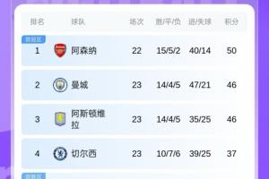 英超积分榜:阿森纳主场首败优势变4分,曼联超越红、蓝军升第四