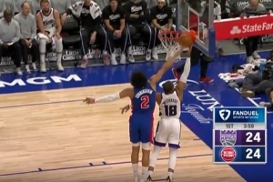 贾旺特·格林三分造犯规 国王挑战失败&末节还剩8分钟已用完暂停
