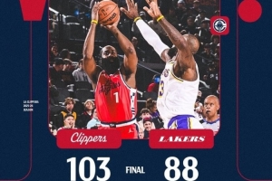 体育资讯12月21日讯 洛城德比快船103-88战胜湖人。