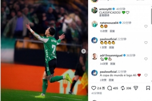 安东尼赛后更新社媒动态,晒出庆祝进球的照片,配文:“晋级!”