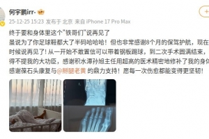 何宇鹏在社媒写道:“终于要和身体里这个‘铁哥们’说再见了,虽说为了你足球鞋都大了半码哈哈哈!但也非常感谢8个月的保驾护航,现在,是时候说再见了!”