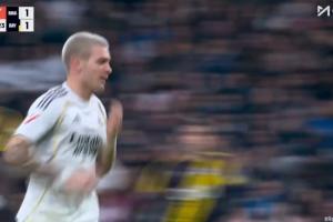 有争议?索兰克射门时踢中格伊的脚腕,VAR检查越位没看是否犯规