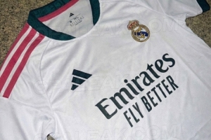 Opaleak晒出2026-2027赛季皇马主场球衣谍照,该款球衣由阿迪达斯设计,主色调延续经典的白色,肩部三道杠为粉红色,领口为圆领设计,与袖口都带有深绿色镶边。