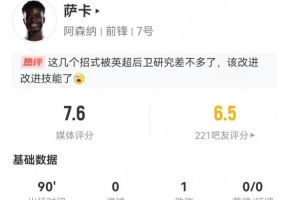 体育资讯12月28日讯 阿森纳在本轮英超对阵布莱顿,萨卡本场数据如下:
